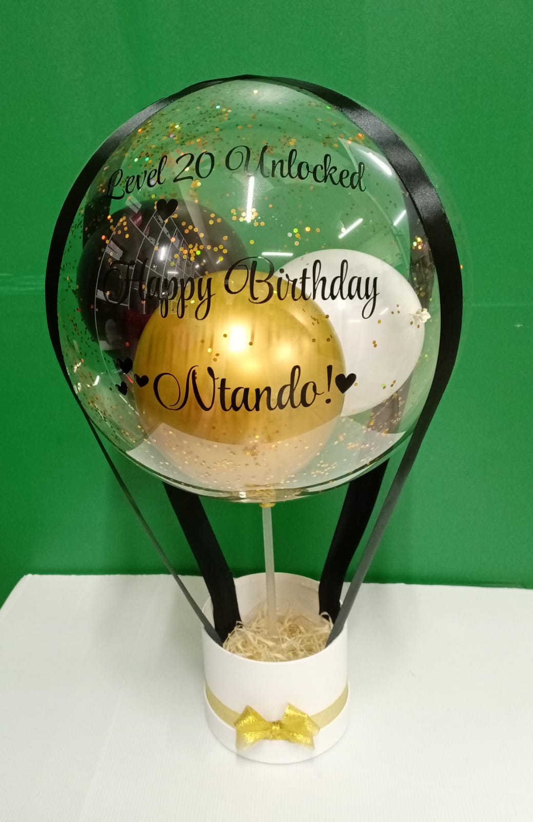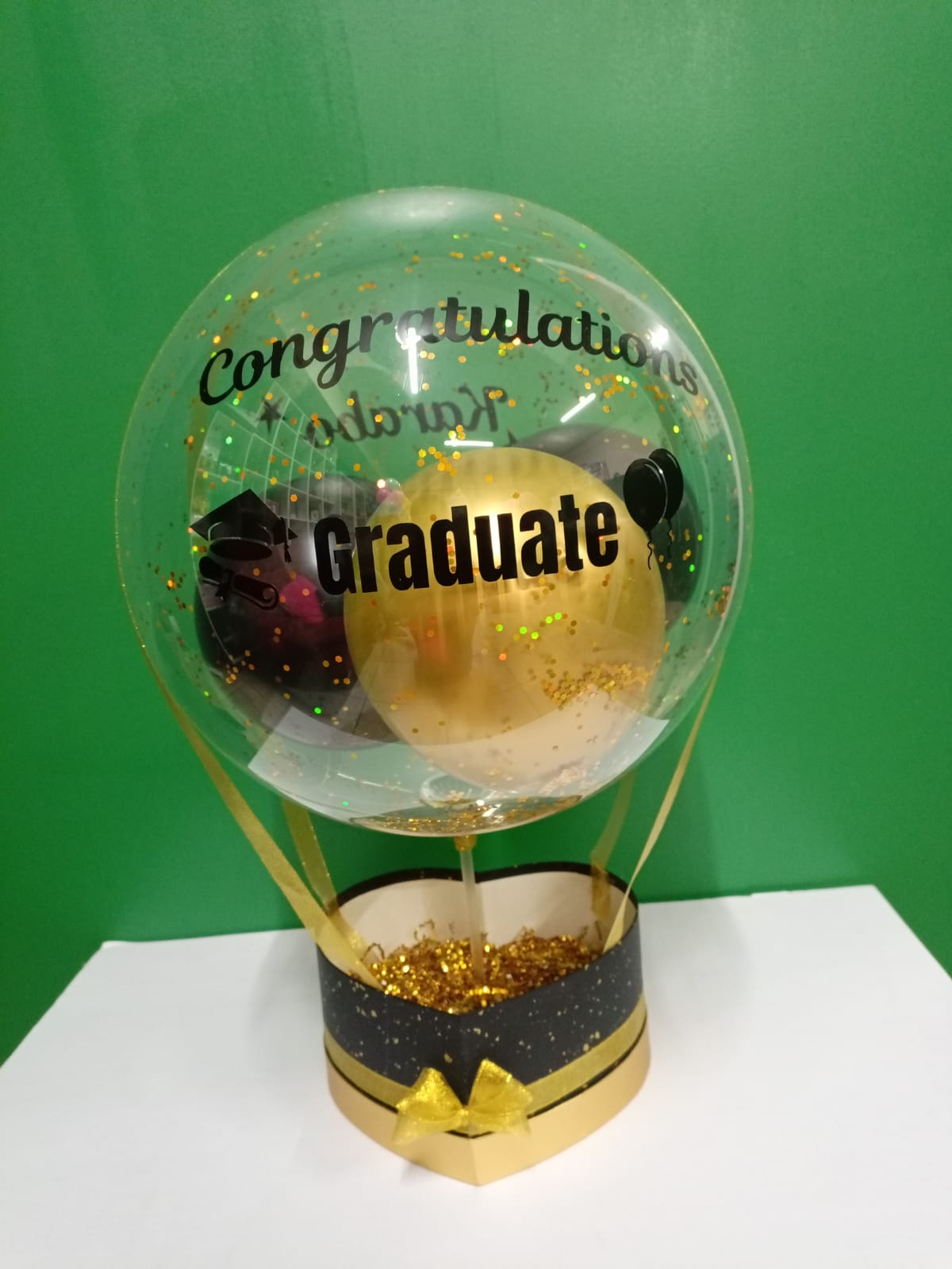 Create your own special gift from out empty gift hamper with a balloon, perfect for customizing with sweets, cosmetics, small gifts, or personal items.