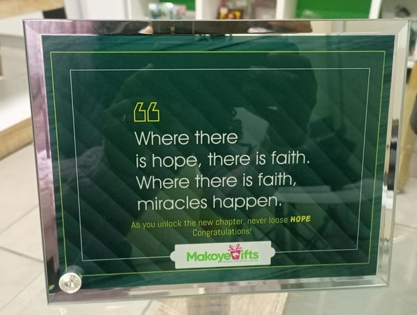 Elegant glass photo frame with a stylish mirror edge finish, perfect for displaying photos, quotes, certificates, or custom designs. Ideal for home décor, gifts, and personalized keepsakes.